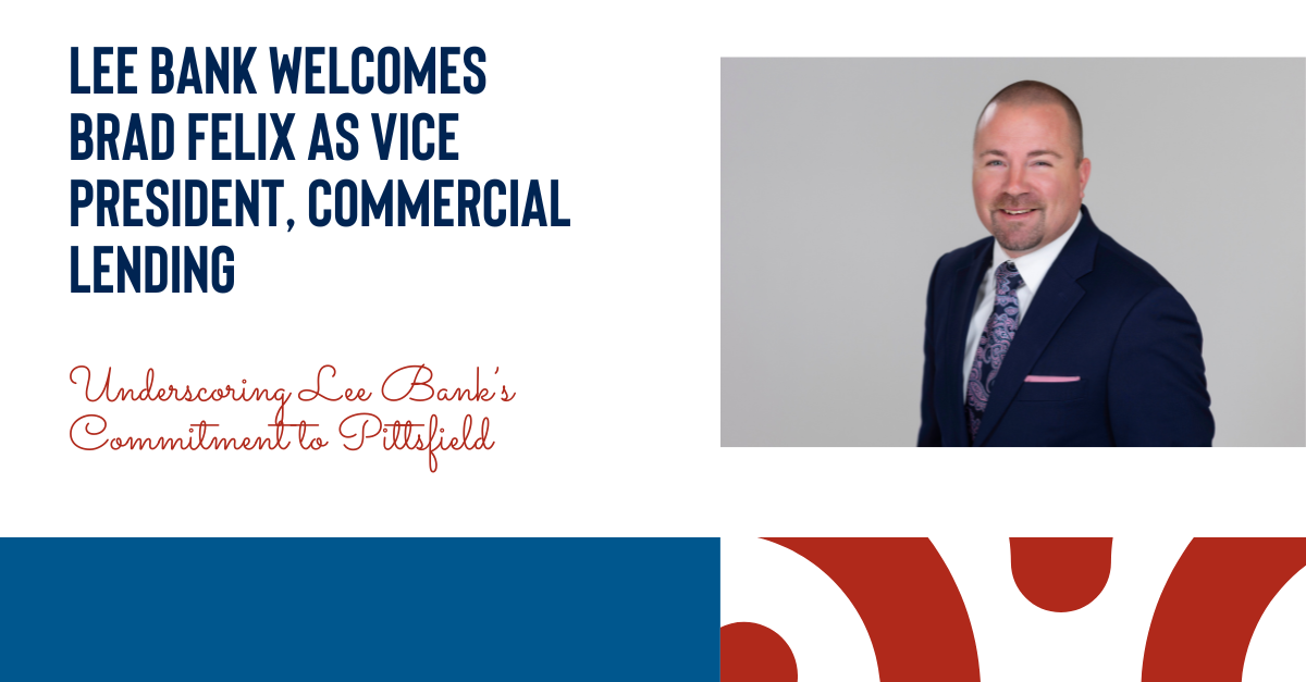 “Brad’s experience and relationships make him a natural fit for Lee Bank, and his presence in Pittsfield strengthens our ability to deliver on what we value most—personalized, community-based banking,” said Chuck Leach, President & CEO.